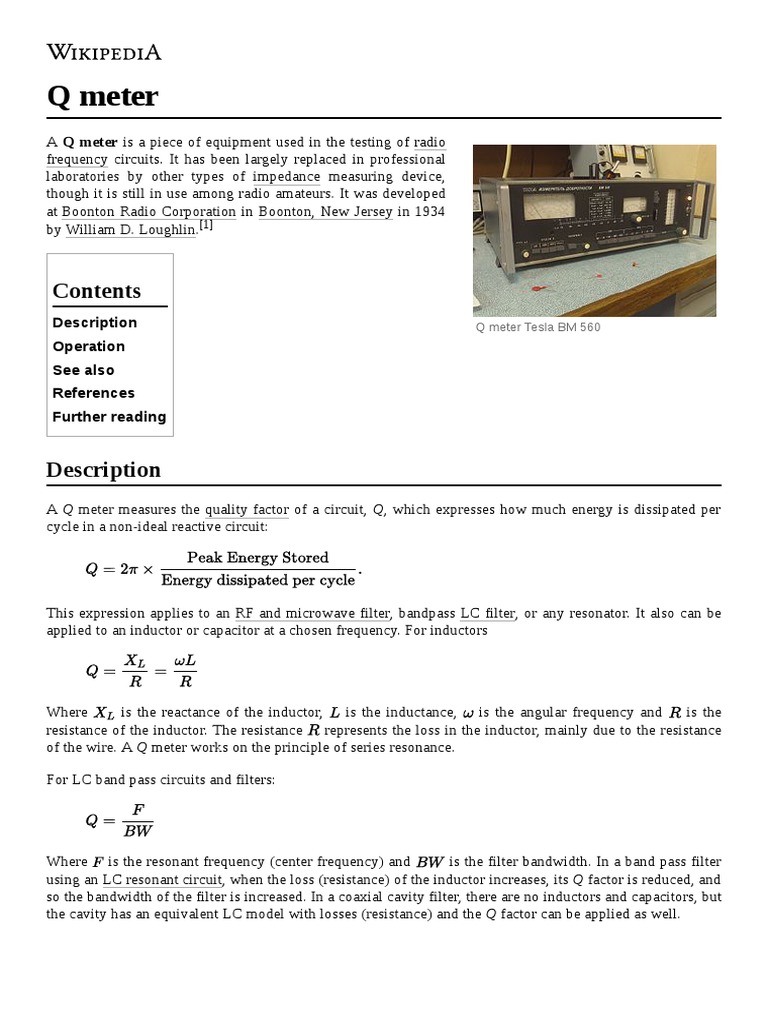 Q Meter Description Operation See Also References Further Reading
